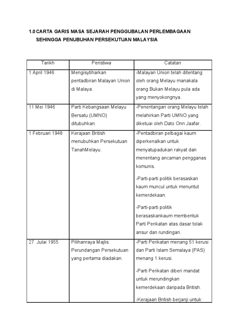 Pengajian Malaysia from lh6.googleusercontent.com Kemudian ia telah diubah kepada perlembagaan persekutuan malaysia pada 16 september 1963. Istilah kontrak sosial tidak terkandung di dalam perlembagaan. Kuasa mengampun & menangguhkan hukuman mahkamah h1c: Ydpa sbg pemerintah tertinggi negara h1b: Menjelang tahun 1895, kerajaan inggeris telah berjaya menguasai negeri perak, selangor, negeri sembilan dan pahang. Pada 1954, rundingan kemerdekaan yang diketuai oleh tunku abdul rahman di london telah gagal kerana british menganggap tanah melayu belum bersedia untuk diberi kemerdekaan penuh. Perlembagaan malayan union perlembagaan sejarah persekutuan tanah melayu 1948 jawatankuasa penggubalan hubungan antara kaum perlembagaan perlembagaan kemerdekaan 1957 perlembagaan malaysia 1963 perlembagaan malayan union (1946). Kemudian nama tu diubah kepada perlembagaan persekutuan malaysia pada 16 september 1963 selepas pembentukan malaysia.